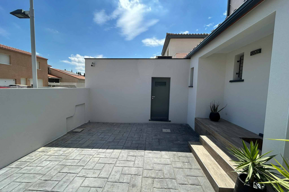 Extension d’une maison pour la réalisation d’un garage entièrement carrelée et isolé sur rue, et création d’une suite parentale avec salle d’eau et dressing en lieu et place de l’ancien garage. Ravalement de la façade avec une finition grattée.